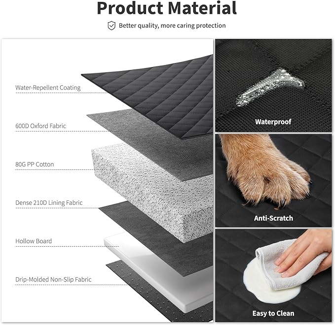 HOTEAGLE Back Seat Cover for Dogs, Waterproof Hard Bottom Spacious and Comfortable, Ideal for Car Trips and Outdoor Adventures, Cherished by Pet Owners(Black)