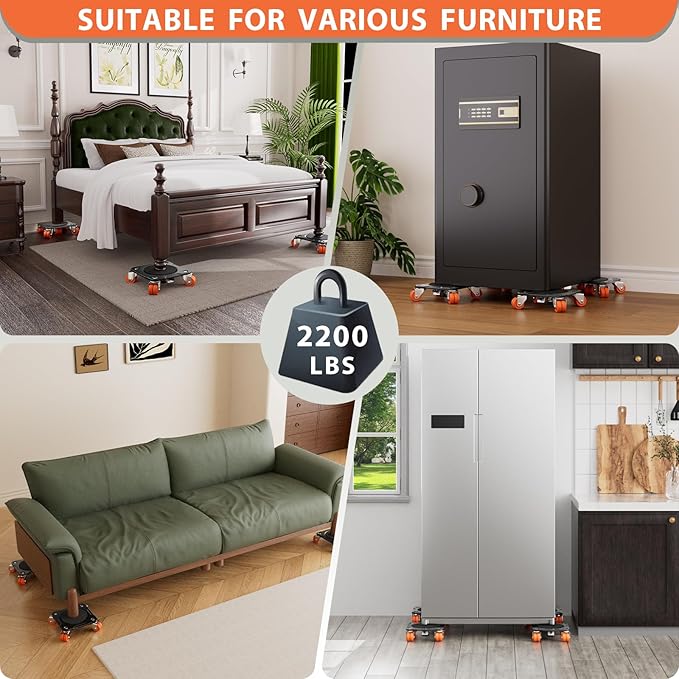 - HEAVY LOAD CAPACITY – Each dolly supports up to 550 lbs, with a set of four reaching 2200 lbs under tested static conditions. Safe, strong, and perfect for anyone needing furniture lifters for heavy furniture