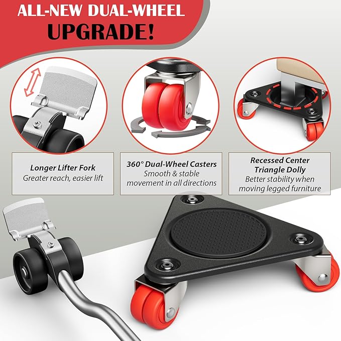 ONEON Furniture Mover Ultra Triangle with 6 Wheels – All-New Upgraded Heavy Item Moving Tool Double-Wheeled Tri-Dolly with Auxiliary Lifter, Full Carbon Steel Panels, Supports up to 1320 lbs
