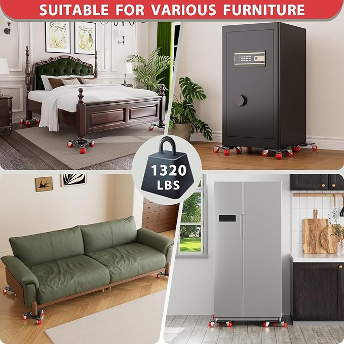 - VERSATILE ON MULTIPLE GROUND – Heavy duty furniture movers with PA double wheels roll smoothly on carpet, tile, epoxy, and concrete. For hardwood floors, use with care to avoid possible wheel marks when moving heavy loads