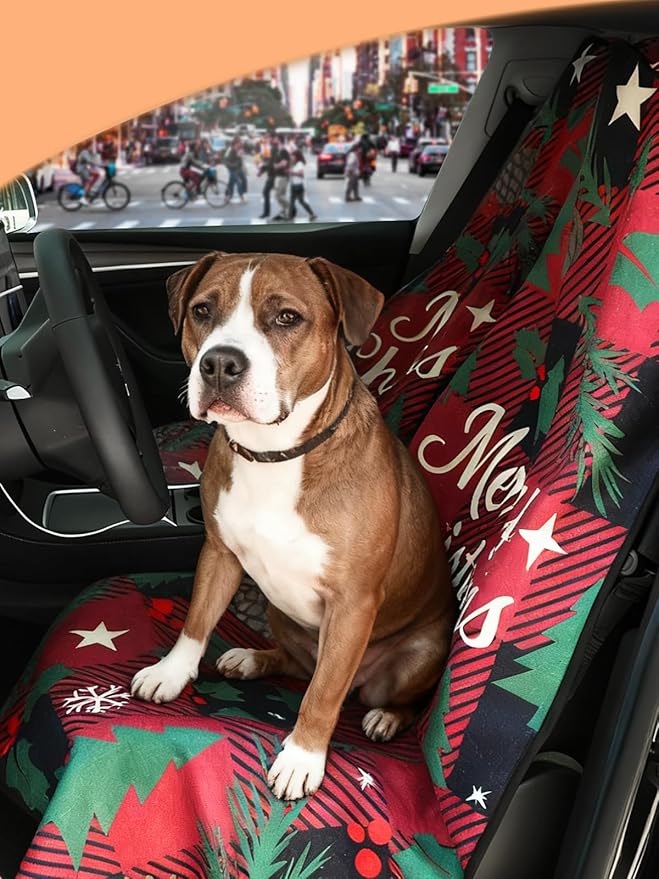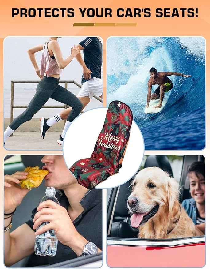 Universal Car Seat Cover Towel, Waterproof Washable Sweat Protection for Front Bucket Seats, Non-Slip Fit, Fits Cars SUVs Trucks, Ideal for Gym, Kids, Pets, Outdoor Sports, Travel (Christmas, 1 Pack)