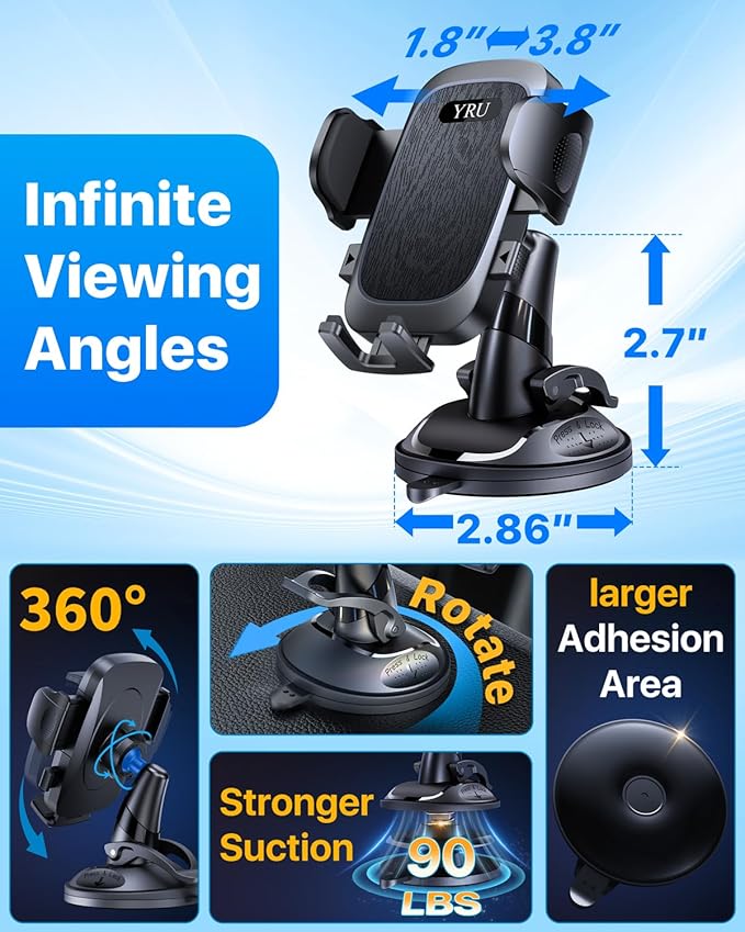 ![[Military-Grade Anti-Shake & 360° Rotatable Suction] 2026 Upgraded Car Phone Holder Mount【90+LBS Safest Strongest & Patent Certs】Dashboard Windshield Vent for iPhone 17 16 15 Pro Max Samsung, Black](http://driveeaseinterior.com/cdn/shop/files/71uO2HEMZqL._AC_SX679.jpg?v=1769840717&width=1445)