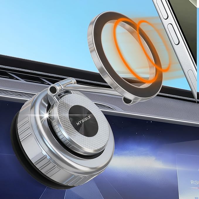 - 【2026 Latest Design Mag-safe Holder】MYSISLE Car Phone Holder combines 24 N55 high-strength magnets with a 4-layer high-performance nano-gel suction cup to deliver unparalleled stability vacuum magnetic phone holder. Its powerful vacuum locking technology ensures a tight seal against the center screen and windshield, achieving “zero wobble” even on bumpy roads. Precisely engineered magnetic arrays ensure instant, accurate adhesion upon proximity, enabling safe, one-handed operation for a comfortable driving experience. Choose MYSISLE for peace of mind on every journey!