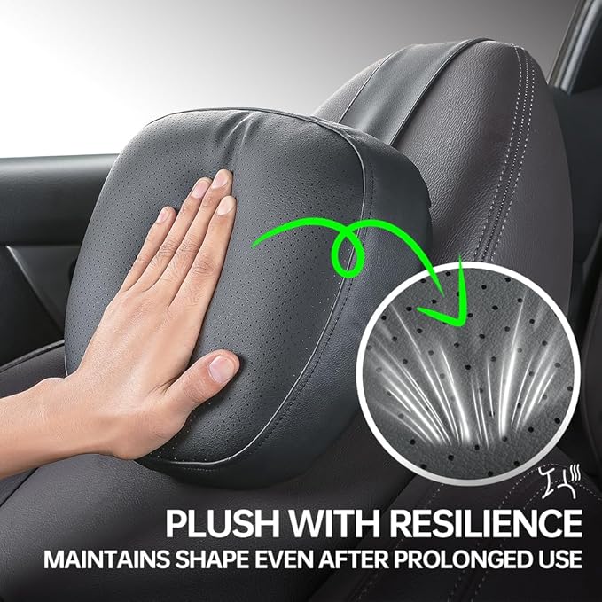 1P Car Neck Pillow 3-Level Adjustable Fits Drivers of All Heights Durable Leather Material Stain-Resistant Easy to Clean Memory Foam Inner Core Ultra Soft Comfortable Wide Straps Anti-Slip Anti-Shift