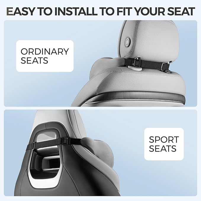 - Universal Fit For All Vehicles - Equipped with stong elastic buckle, Our car seat headrest is designed to fit variety cars, Suvs, trucks, whether you are a regular seat, a sports seat or an airline seat, it can be matched and provide more stable support. making it a versatile car seat pillow for travel, work, and long drives.