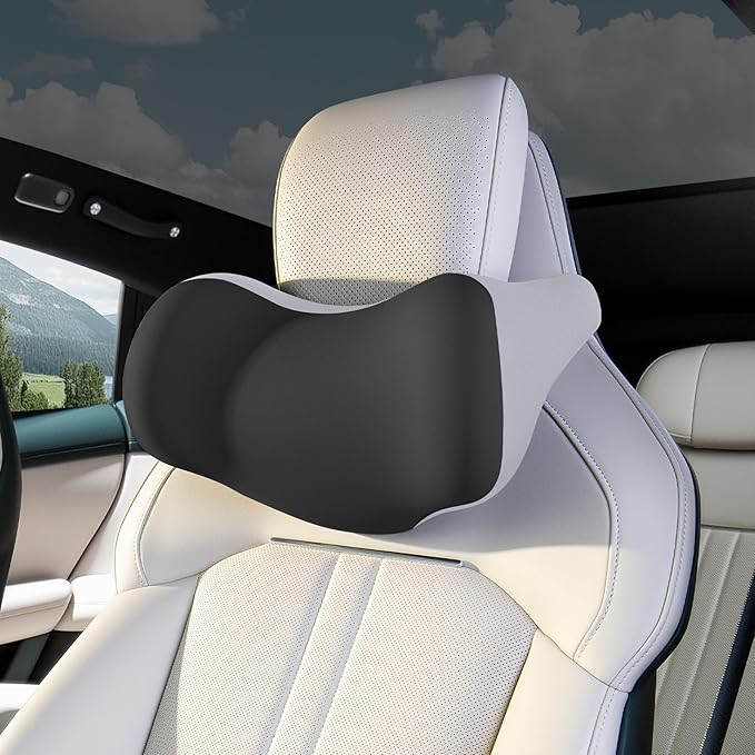 BEBAS Car Headrest Pillow, Ergonomic Neck Pillow with Memory Foam, Universal Car Head Rest Support for Driving Comfort, Breathable Removeable Seat Pillow for Pain Relief (Black, 1 Pack)