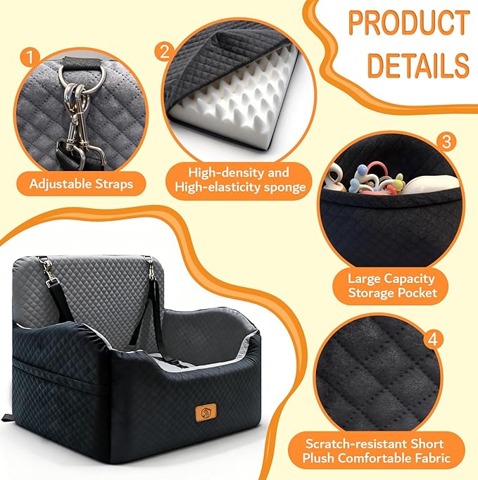 - ✅【Multi-scene Use】: This dog car seat booster is not only suitable for use in cars but can also be used at home, outdoors, or anywhere you can imagine. It features large capacity storage pockets on both sides, providing a convenient spot to store doggy snacks, pet toys, and other essentials.