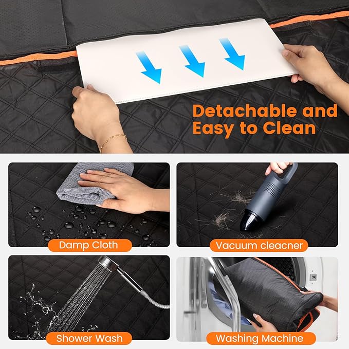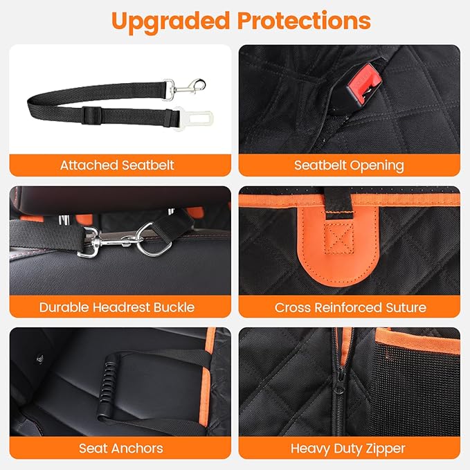 - Waterproof and Scratch-Resistant: This back seat pet cover for dogs combines a 7-layer reinforced design (600D Oxford Cloth, PVC waterproof coating, EVA non-slip base,35D cotton). The dog car seat cover for back seat protects your seats from dog hair, drool, waste and scratching claws, making dogs comfortable on car journeys. It's the perfect choice for road trips, the beach, or camping adventures