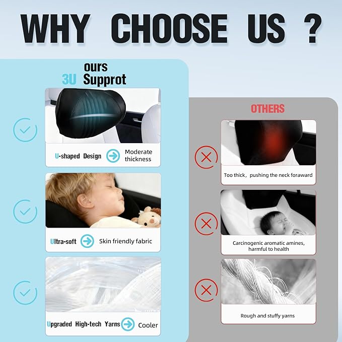 - EASY INSTALLATION & SECURE FIT – Adjustable strap allows quick installation and helps keep the headrest stable on most vehicle seats.