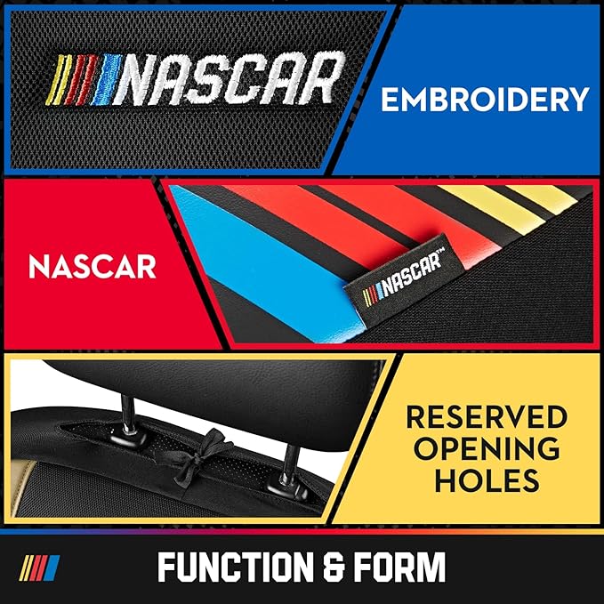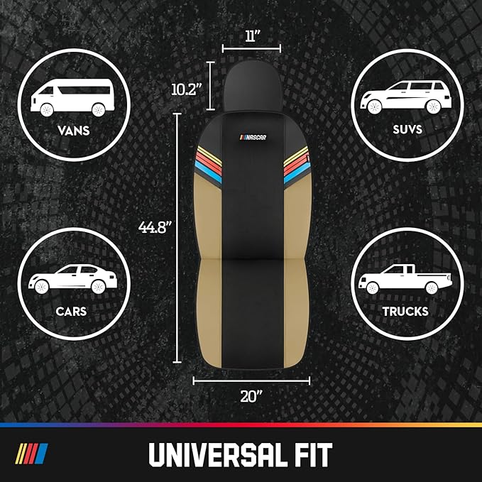 - UNIVERSAL FIT - Cars, Trucks & SUVs: These Front Seat Covers are designed to fit most vehicles including cars, trucks, and SUVs, providing a snug, easy-install fit while upgrading your cabin with a sporty NASCAR look.