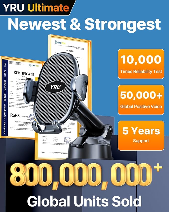 - [Pro Version & Prior Choice, Securely Grip Phones] Securely holding Phone on dashboard/windshield. Keeping your phone within easy reach while driving. The R&D Team took 5 years, test 200+ kinds of material, optimize 200+ models designed this phone mount. Certified by CP65/ REACH/ ROHS