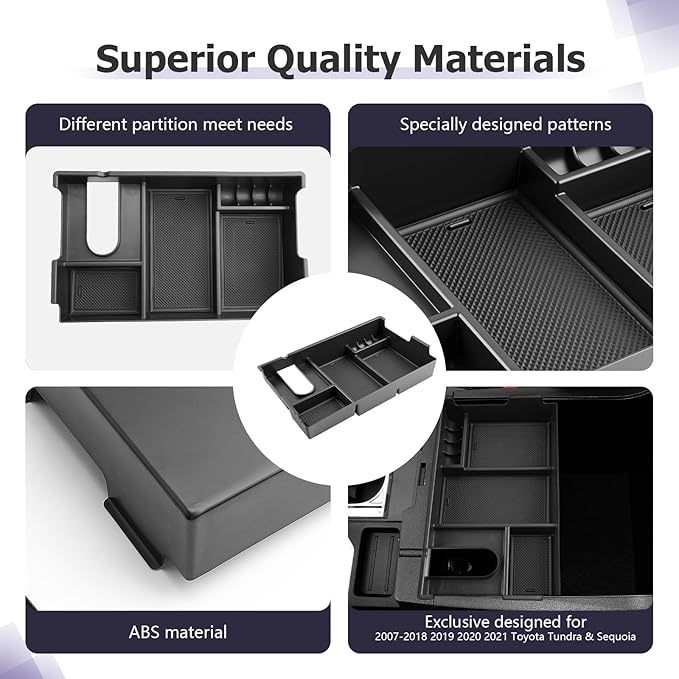 - Durable & High-Quality Materials — This Tundra & Sequoia accessories,Tundra & Sequoia armrest storage box is made of ABS plastic. Tundra & Sequoia center console organizer is very strong and can be a good independent armrest box while you are driving. Tundra & Sequoia accessories is also moisture-proof and resistant. Corrosion and durability