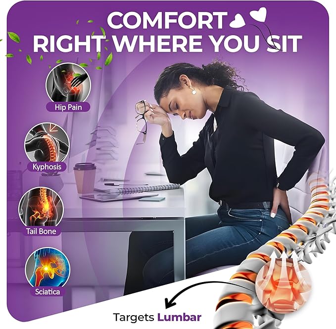 - Ideal ergonomic office chair cushion for car, travel, gaming, and wheelchair use—supports tailbone, spine, and hips, sciatica, coccyx, lower back pain, and improves posture during long sitting hours. Best seat cushion for car seat driver.