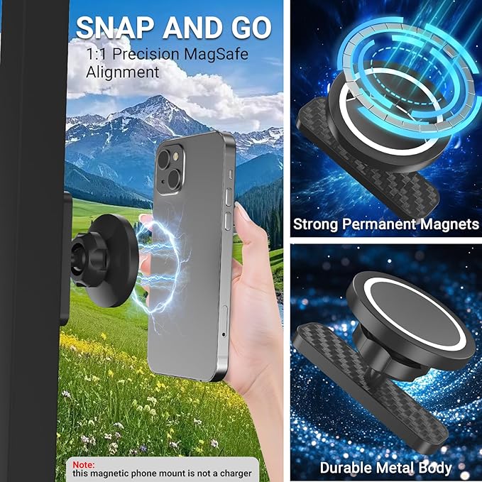 Magnetic Golf Cart Phone Holder - Golf Cart Phone Mount for EZGO, Club Car, Compatible with MagSafe iPhone 16 15 14 13 12 Series Mini, Fits EZGO & More, Ideal Golf Gift for Men & Women