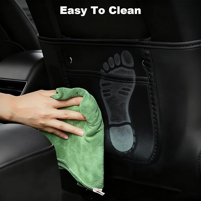 - Premium Durable Leather: This kick mat is made of high-quality leather that is superior to traditional materials, making it durable and more wear-resistant. Its smooth surface is easy to clean, simply wipe off stains, dirt, or footprints with a damp cloth or wipe, keeping the interior of your car in its original state.