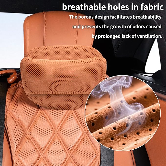 - Breathable Material for All-Season Use:The premium suede fabric of our car neck pillow suede is not only soft and comfortable but also highly breathable. This suede headrest pillow for car allows air circulation to keep you cool during hot summer months and provides warmth in cold weather, making it suitable for year-round use. The removable and washable cover ensures easy maintenance, keeping your luxury car neck pillow suede clean and fresh.