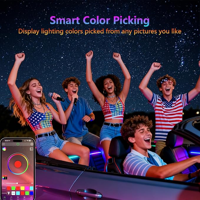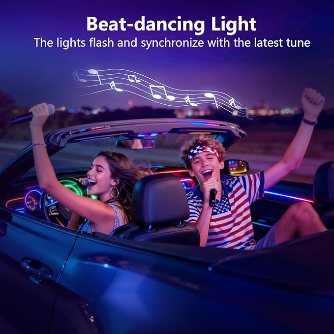- 【Four-Line Design & 16 Million Colors】 A four-line design creates all-around interior lighting. 16 million vibrant colors and multiple modes (constant, flashing, strobe, gradient) are available to suit your mood. This LED interior light strip provides superior lighting effects, creating a personalized driving experience.