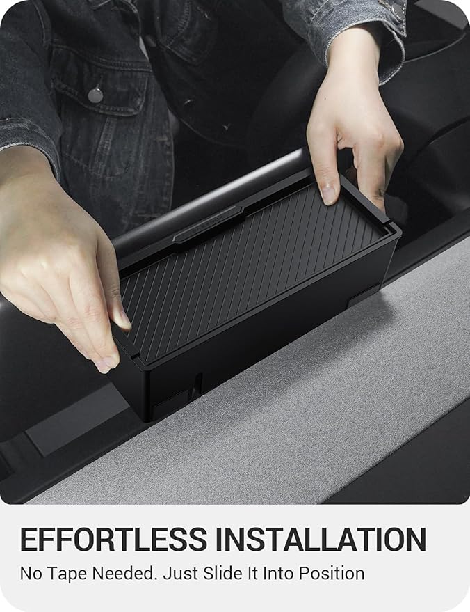 - Premium TPE Material & Silence:Upgrade your dashboard with this Tesla upgraded behind screen storage box crafted from top-tier TPE+TPU material. It boasts superior scratch and wear resistance, is 100% odorless, and features a non-slip bottom texture. This design eliminates rattling noises, ensuring your items stay stable and quiet even on bumpy roads—perfectly maintaining the serene silence of your EV cabin