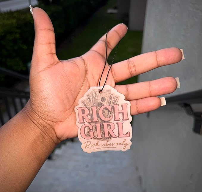 Inspirational Luxury Car Air Freshener & Keychain Bundle – 6-Piece “Essentials by Mery” Collection for Motivation & Positive Energy (Rich Girl – Strawberry)