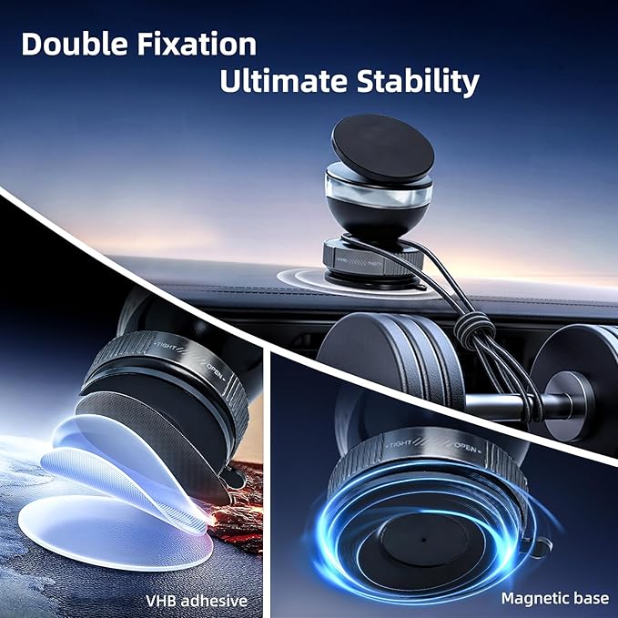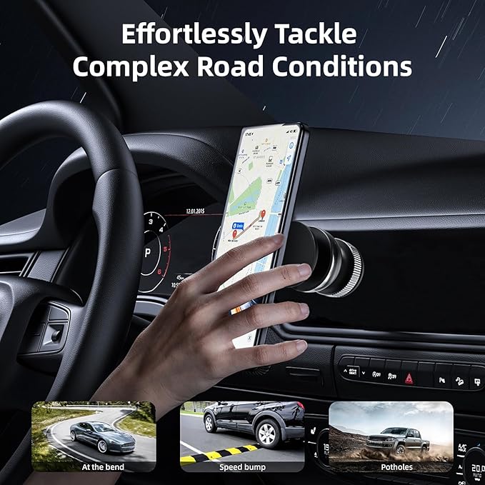 - 【MagSafe Design & Easy Setup】Compatible with most smartphones, including iPhone 12-16 series and devices with magnetic backs. Even if your phone doesn't have MagSafe functionality, you can still achieve a secure and stable connection to the mount by attaching the included magnetic ring.Vacuum magnetic ring suction mount holds firmly on car dashboards, glass, and flat surfaces, offering hassle-free installation and removal.