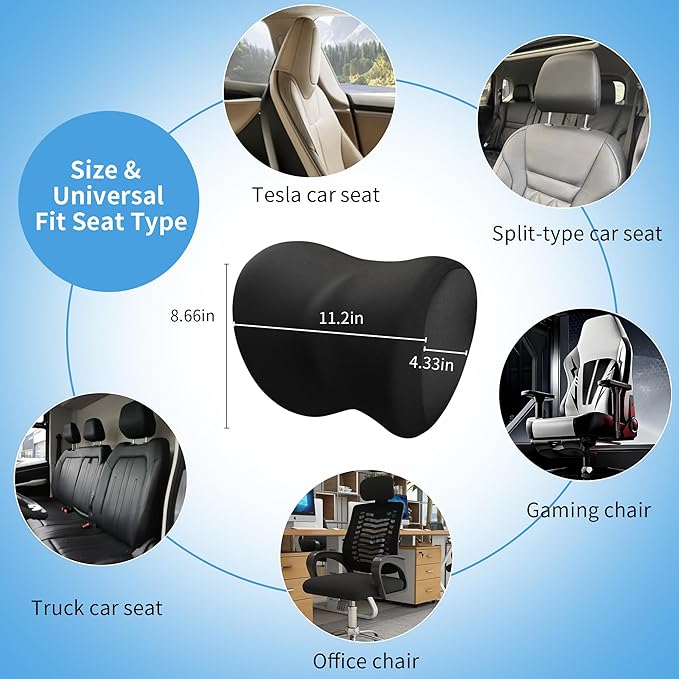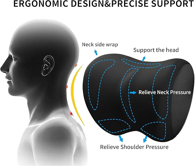- 【Relieve neck pain】When you are driving, working or resting while sitting, there is a gap and no support between your neck and the seat. So when you sit for a long time, you will experience neck pain and tension in the trapezius muscles. The car neck pillow is precisely designed to fill this gap and support your neck and shoulders. It can also support your head to reduce the pressure on your neck. The filling material of the car headrest pillow is high-density memory foam, which is soft and supportive. It can absorb the impact force caused by sudden braking and reduce head injuries.