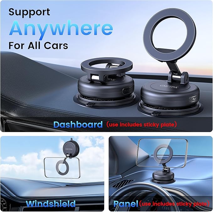 - Safe Adhesive Suction Cup Mounting System: GMETINK car phone holder combines an advanced adhesive base with vacuum suction cup technology. Tested for 5000 vibrations, the 4-layer high-strength nano-gel suction cup supports up to 78 lbs and operates reliably in extreme temperatures (-40°F to 300°F). It is safe and harmless to vehicle surfaces and can be easily removed without damage.