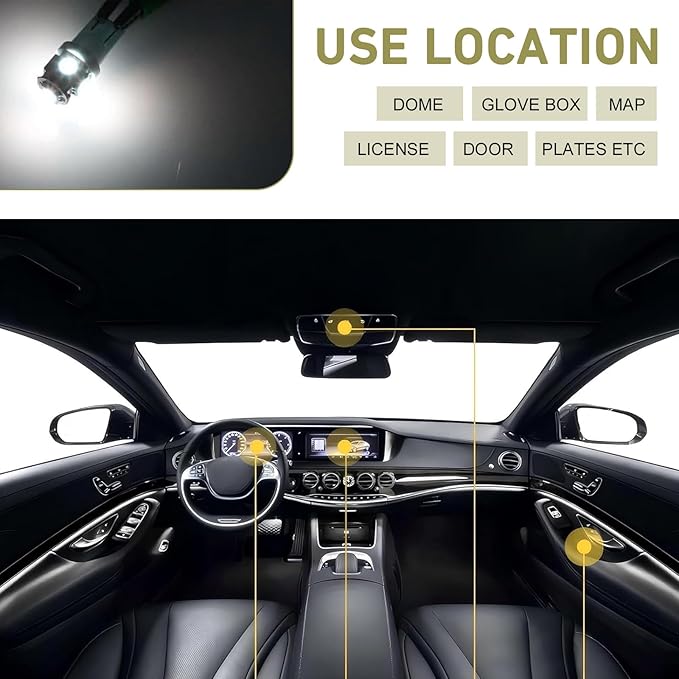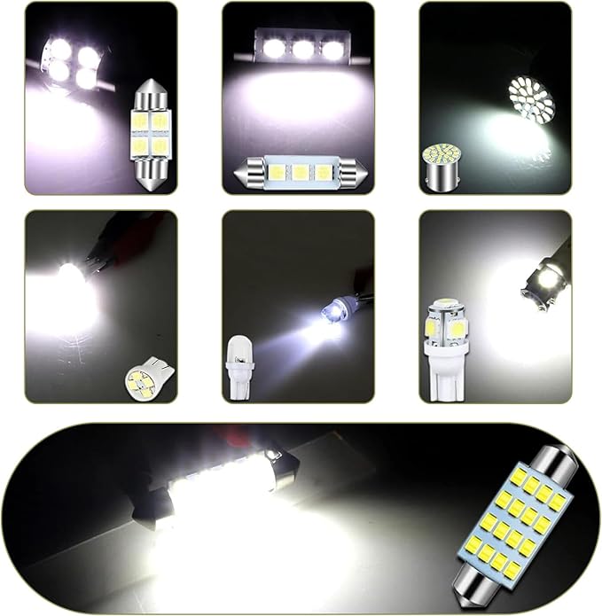 - Universal Application: This led interior lights kit is compatible with many vehicles and supports multiple uses such as dome, map, door, trunk, mirror, and license lighting. Since sizes vary, some bulbs may not fit every model, and selection depends on the light socket.