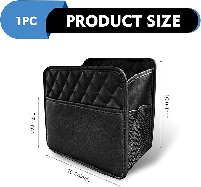 - Dual Function: Storage & Trash Can: Beyond storage, it serves as a practical rear seat trash can for on-the-go waste disposal. The waterproof leather material prevents leaks, making it ideal for holding wrappers, tissues, or empty bottles during commutes or road trips.