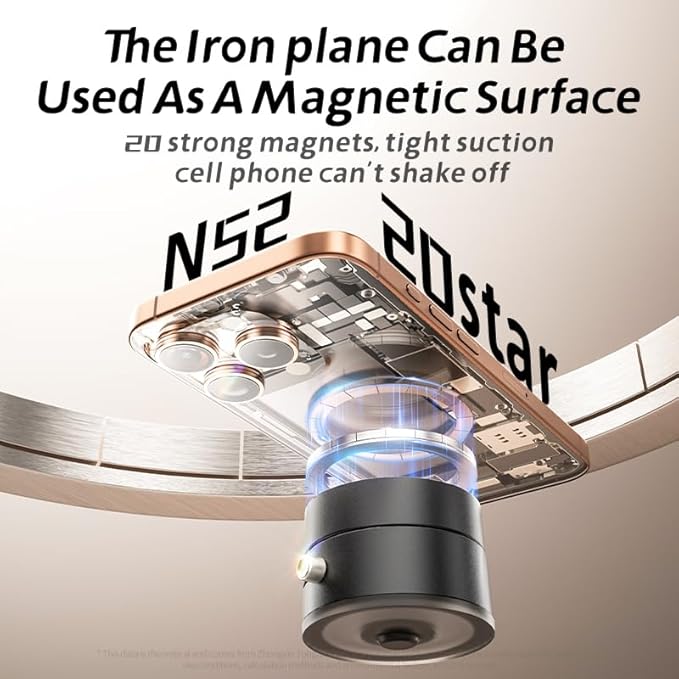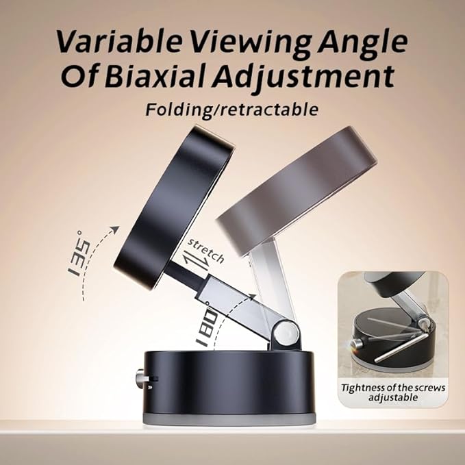 Multi-Surface Magnetic Phone Holder Mount-Foldable Telescopic Vacuum Suction with 360° Dual-Axis Adjustable Stand for Car/Wall/Mirror,Compatible iPhone 12-17 Pro Max & Android(Strong Neodymium Magnet)