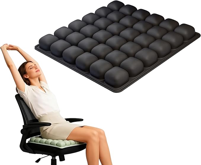 - Pressure-reducing design: This cushion's individual air chambers evenly distribute pressure on the buttocks, protect the coccyx, prevent sciatica, improve blood circulation after prolonged sitting, and are specially designed for people who sit for long periods of time, distributing pressure and making sitting comfortable.