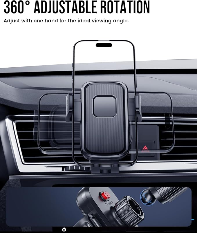 Delobon Phone Holders for Your Car [One-Button Release] Car Phone Mount 360° Adjustable Vent Cell Phone Holder for iPhone 17 Pro Max 16 15 Samsung S25 S24