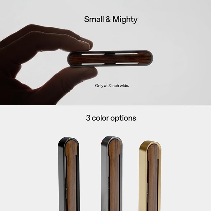 - WOOD + METAL DESIGN | Solid walnut wood (sustainably sourced), enclosed in beautiful brushed metal, adds a touch of elegance and warmth. Designed to complement contemporary automotive interior finishes and create a luxurious cabin atmosphere.