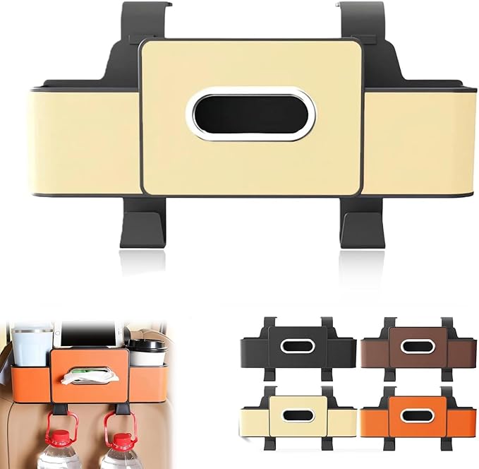3 in 1 Car Backseat Organizer with Cup Holder, Leather Multifunctional Seat Back Storage with Tissue Box, Phone Holder and Hooks, for Hold Phones, Snacks, Drinks, and Handbags (White,1PCS)