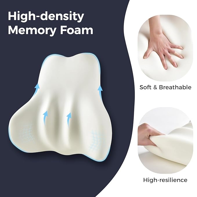 - Back Pain Relief: Our lumbar support pillow uses high-density memory foam, which has slow-rebound performance, ensures strong support to your back. This lumbar pillow absorbs and relieves stress on your body, corrects sitting posture and delivers maximum comfort for your body, effective back pain relief. Making it perfect for when you're driving long distances and taking a break at home