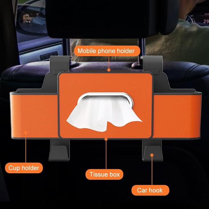 - 【Unique Tissue Box Compartment】This back seat car organizer features an innovative, built-in tissue box holder for quick access to napkins, and small essentials. Perfect for handling spills, snacks, or messes on the road, it keeps your car tidy and ensures you’re always prepared during family trips, commutes, or long drives.