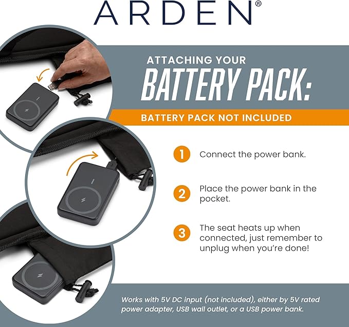 - Heated Stadium Seat pairs with a 5V DC Power Bank (NOT INCLUDED) to keep you warm longer; you can enjoy your game, concert, or any outdoor event no matter the temperature