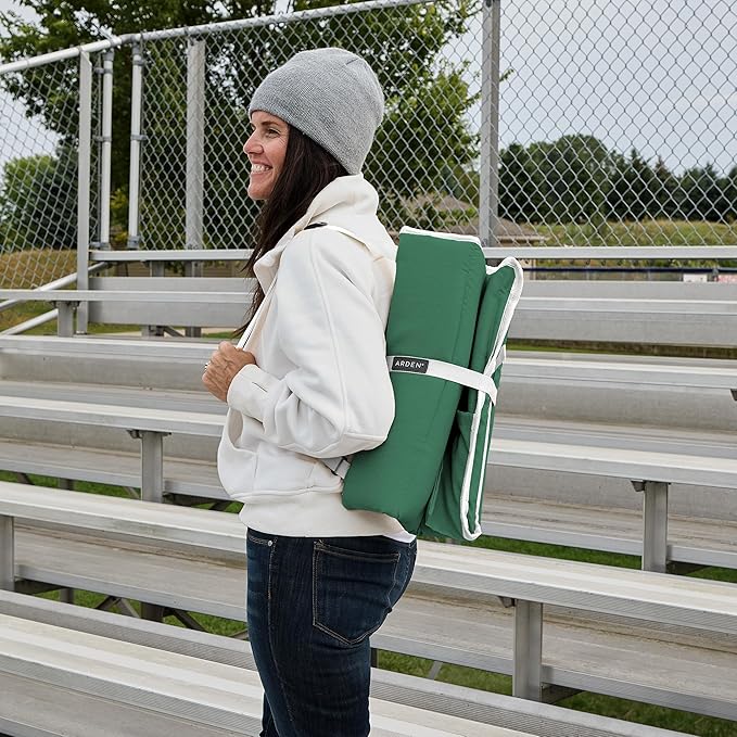 Arden Heated Stadium Seat, Foldable, Lightweight with Carrying Strap, Foam Cushion for Comfort, Adjustable, Back Support, Multi-Functional Use As Stadium Seat or Seat Pad, Green/White