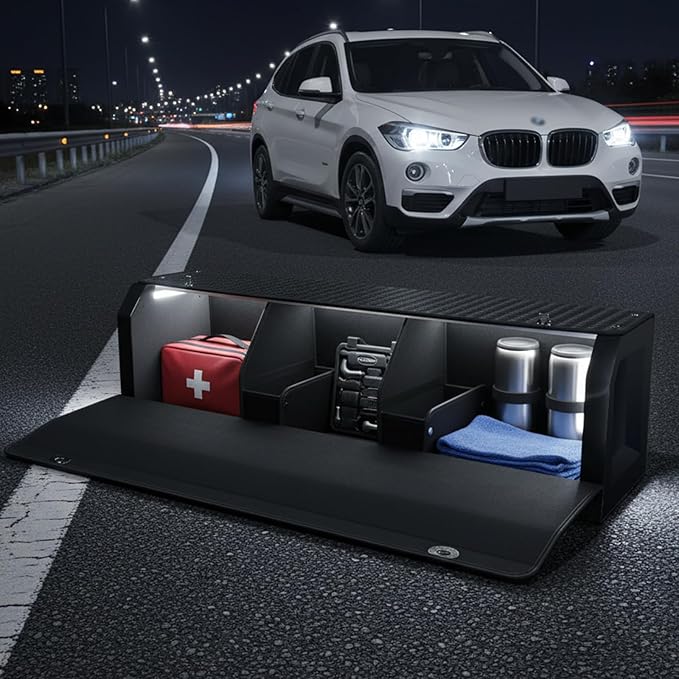 - 【Durable Material】SUV trunk organizer with light made of premium ABS & PU leather, with reinforced double stitching. Waterproof, moisture-resistant, anti-crack/break/wear. Wipes clean easily with a cloth. A reliable storage solution for daily & travel—keeps your car trunk tidy, built to last