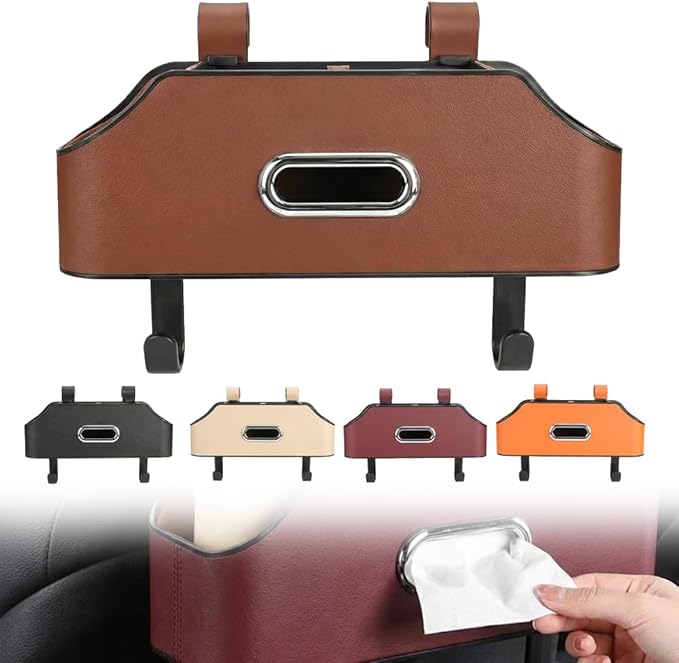 3-in-1 Car Backseat Organizer, 2026 Multifunctional Car Back Seat Storage Organize Box with Cup Holder Tissue Box, for Hold Phones, Snacks, Drinks, Handbags (Brown)