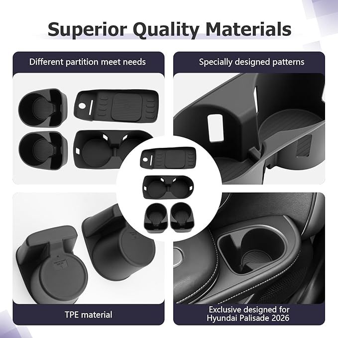 - High Quality Material—2026 Palisade center console cup holder made from high-quality silicone material. No pungent odor. Waterproof and durable