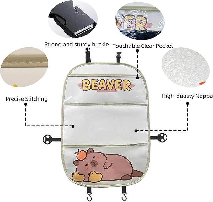 2-Pack kids Leather Car Backseat Organizer with Foldable Table Tray, Car Storage Organizer with Tablet Holder, Car Seat Back Protectors Kick Mats, Travel Accessories (Capybara)